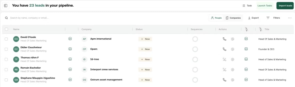 Significant improvements have been made to the sequence feature. In the manager cockpit, you can now track your sequence's performance, as well as the performance of every team member. With this feature, you can generate a list of leads that have: